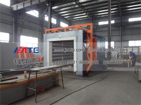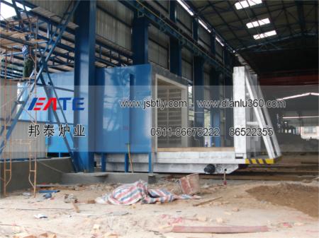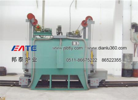 臺車爐主要用于鑄鋼件、汽車零部件、軋輥、鋼球、金屬結(jié)構(gòu)件、焊接件淬火、正火、退火、回火、時效以及各種機械零件熱處理之用。爐型可根據(jù)客戶需求量身設計定做。爐殼:是用角鋼、槽鋼及鋼板焊接而成的長方體外殼,殼體下邊有槽鋼焊接成支持爐體的支架。爐襯:采用全纖維結(jié)構(gòu),相對磚式爐膛節(jié)能40%左右,采用優(yōu)質(zhì)長纖維刺毯為原料,使用專用設備制成的模塊,并組成節(jié)能型爐膛,達到完好蓄熱效果,與其它產(chǎn)品相比優(yōu)點為低導熱,低熱容量,優(yōu)良的腐蝕性能,優(yōu)良的熱穩(wěn)定性及熱抗震性、升溫快等優(yōu)點。加熱元件采用高溫電阻合金絲繞制成帶狀和螺旋狀,分別吊掛在爐側(cè)、爐門、后墻及安放臺車擱絲磚上,并用高鋁瓷釘固定,安全簡潔。 電氣控制系統(tǒng):溫控采用智能微電腦程序控溫,另配記錄儀記錄完整工藝曲線,并可超溫報警;操作采用按扭加燈光顯示,實現(xiàn)對臺車進出、加熱元件通斷及爐門升降等動作的控制,并設有連鎖裝置,當爐門升高工或關閉至一定位置時臺車可進行動作,安全可靠。