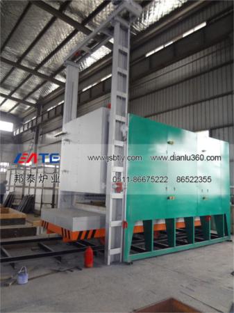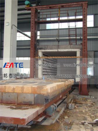 全纖維臺車爐由爐體(包括爐襯)、爐門、爐車、爐門起吊機(jī)構(gòu)、爐車行走機(jī)構(gòu)、加熱元件、溫控系統(tǒng)、溫度記錄等部分組成。